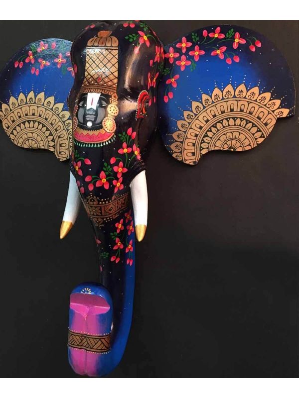 The elephant head is adorned with a hand-painted Balaji on the trunk and an intricate mandala design on the ears.