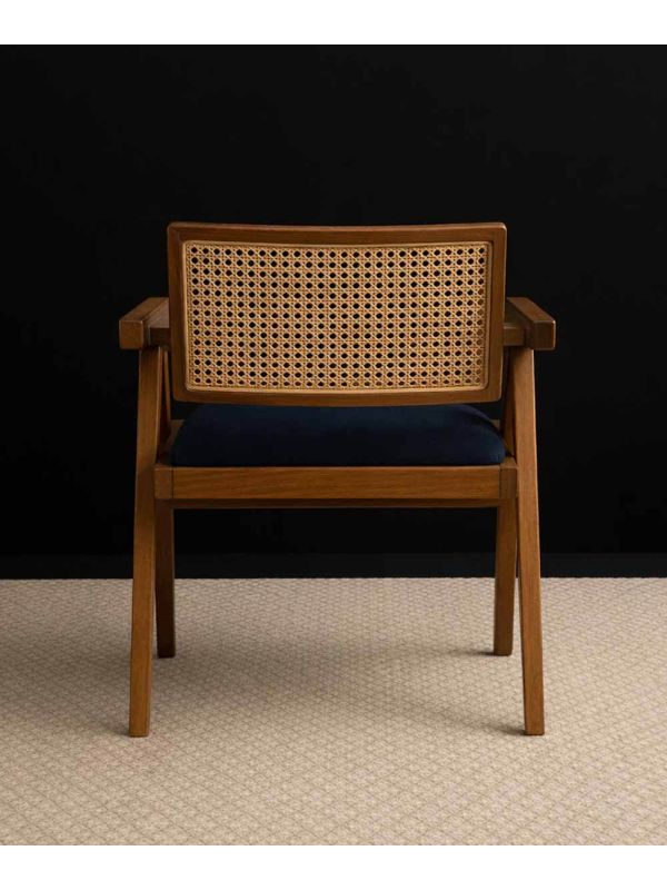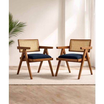 Expertly handcrafted from solid teak wood with hand-woven natural cane, these chairs are known for their clean lines, angular frames, and timeless modern Indian design.