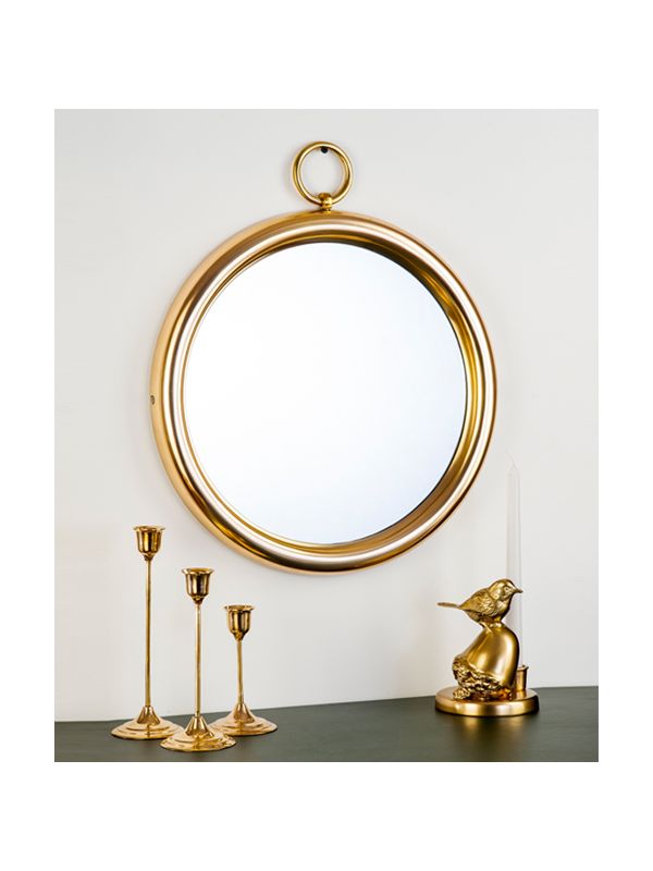 Bring some fairytale charm with our Alice in wonderland inspired round gold metal mirror. Perfect for hanging on your bedroom wall and start decorating with round mirrors.