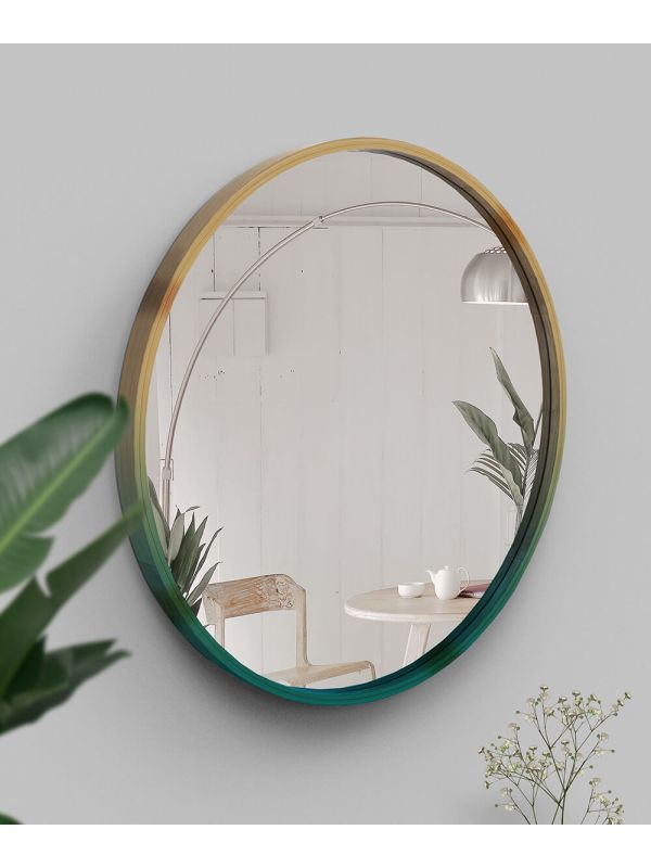 Handcrafted by heritage artisans, this round wall mirror piece brings together craftspersons of all backgrounds. Part function, part art, this exquisite earthy mirror is a best-of-both-worlds design. Featuring a clean, minimal oval shape, finished with a bamboo frame in natural texture and an interesting palette, this piece makes an impact in your entry, hallway, or above your couch. Handmade in an ethical environment, from start to finish, this mirror takes five-plus days to complete.
