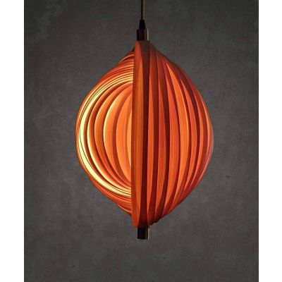 Inspired by a seashell, this sustainable pendant is playful poetry from bamboo, where warm light filters from the rhyme of precisely arranged bamboo strips forming a seashell, as if small drops of pearl waving to the walls behind, to cast striking shadows, capturing a sense of continual movement and elegance that is unique to this association.