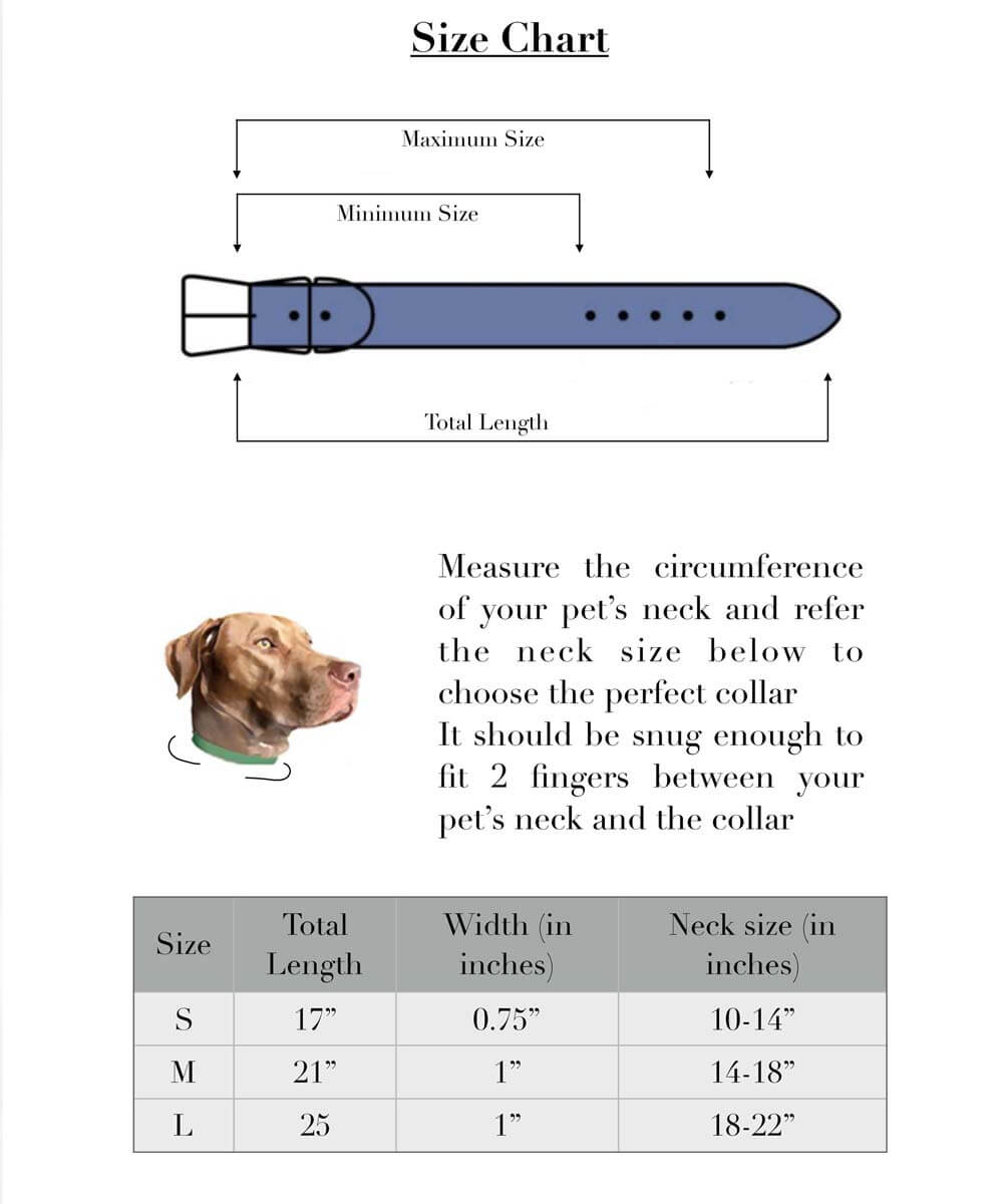 L: Neck size: 18 - 22 inches | Width: 2.2 inches