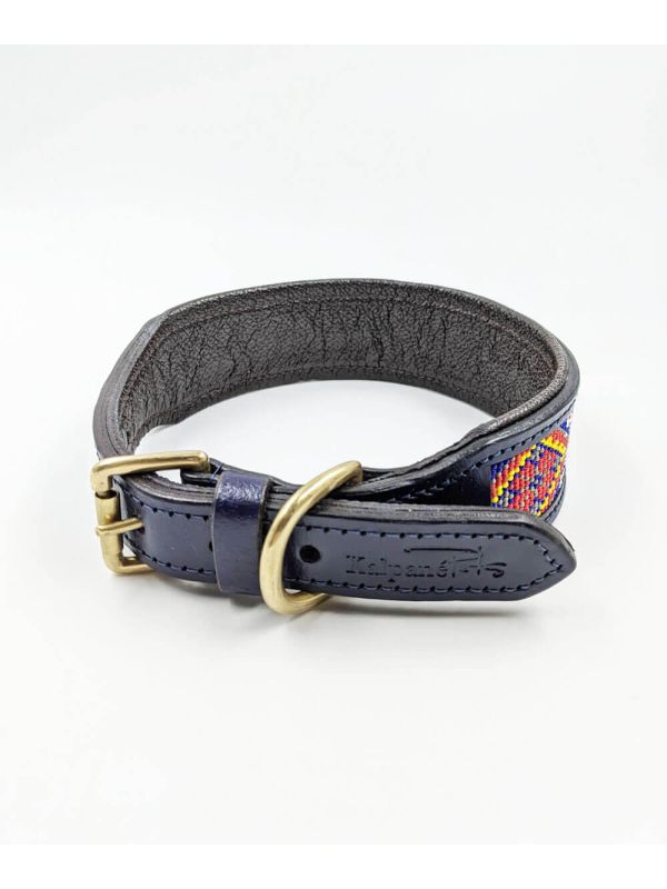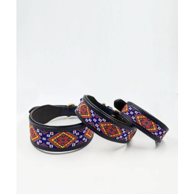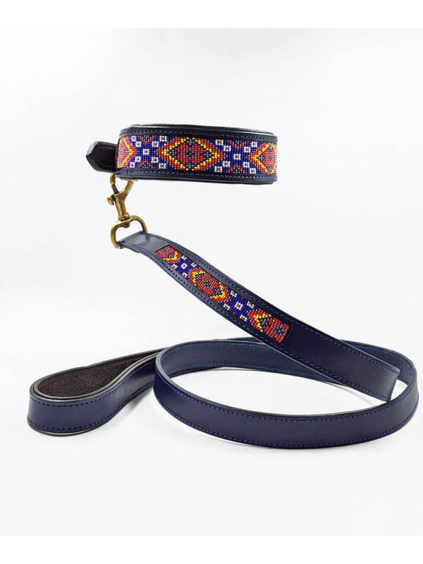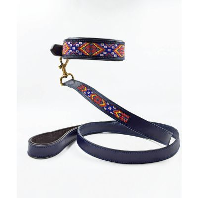 Premium leather dog collar that comes with a lovely hand-stitched beaded pattern with Brass fittings. This leather dog collar and leash set has been handcrafted by master artisans and will surely make your pet stand out.