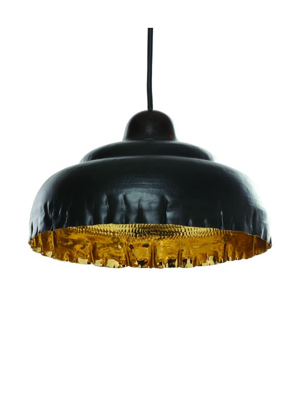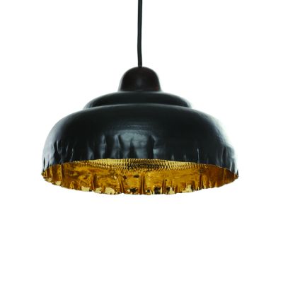 The wavy pendant lamp has an antique black exterior in contrast with hand beaten warm gold interior made with brass. Each piece of this wavy pendant light has been handmade by master artisans and will enhance the lighting in your homes
